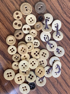 The lucky buyer will get this lot of thirty-four(34) bone underwear buttons. This lot features the smaller two hole. Sew through shank. Items range in size from approximately: 5/16" to 3/4" in diameter. For seller tracking purposes only- Inventory Lot#10) Condition: Due to the age& organic nature of these items. Quality, texture, color& sizes may differ from one to the other. Items show varying signs of age& wear. Smoke Free Home* NOTICE: PAYPAL PAYMENTS EXPECTED WITHIN 24 HOURS OF THE CLOSE OF THE SALE! THE BUYER'S ADDRESS MUST BE FROM THE COUNTRY IN WHICH THE BUYER CURRENTLY RESIDES PERIOD! The item(s) in this lis ting are considered collectible(s) are not meant for use by children. Most items I list are old& have seen time. Use& wear. Items may contain odors due to their material, age& exposure to ... morea variety of environments over the years. I will allow the photos to do the talking. As I always provide clear, close-up photos. Questions are welcome, so please ask if you're in question of anything before bidding. Please contact me if you have questions about the item BEFORE you bid or buy. Use the"zoom" feature in the photos to get a closer look. All items are sold in"AS IS" condition& ALL SALES ARE FINAL unless grossly misrepresented. I always provide painstakingly detailed images. Which are considered part of the item description. I never use stock photos. What you see, is what I sell! Allerg y Notice: Please keep in mind that most of the i tems I sell are used& may contain and/or have been in contact with any number of allergens. I often clean items that may require it. But only if cleaning will not damage and/or decrease the value of the item. ~ ~ ~ ~ ~ ~ ~ ~ ~ ~ ~ ~ I love finding the unusual& hard to find. As well as the most collectible& cherished vintage& antique items! I have old buttons, vintage Barbie(s) marbles, toys, games, glassware of all kinds, plus many other rare& wonderful finds! Be sure to add me to your&