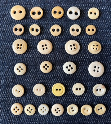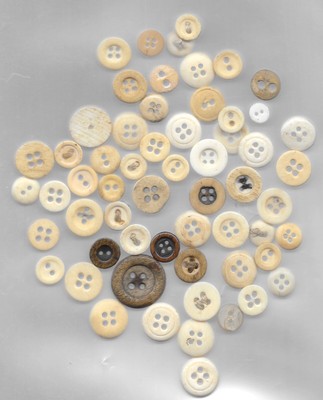 The lucky buyer will get this lot of twenty-seven(27) bone underwear buttons. This lot features the smaller four hole. Sew through shank. Items range in size from approximately: 1/2" to 11/16" in diameter. For seller tracking purposes only- Inventory Lots 7. 8& 11 combined) Condition: Due to the age& organic nature of these items. Quality, texture, color& sizes may differ from one to the other. Items show varying signs of age& wear. Smoke Free Home* NOTICE: PAYPAL PAYMENTS EXPECTED WITHIN 24 HOURS OF THE CLOSE OF THE SALE! THE BUYER'S ADDRESS MUST BE FROM THE COUNTRY IN WHICH THE BUYER CURRENTLY RESIDES PERIOD! The item(s) in this lis ting are considered collectible(s) are not meant for use by children. Most items I list are old& have seen time. Use& wear. Items may contain odors due to their material, ... moreage& exposure to a variety of environments over the years. I will allow the photos to do the talking. As I always provide clear, close-up photos. Questions are welcome, so please ask if you're in question of anything before bidding. Please contact me if you have questions about the item BEFORE you bid or buy. Use the"zoom" feature in the photos to get a closer look. All items are sold in"AS IS" condition& ALL SALES ARE FINAL unless grossly misrepresented. I always provide painstakingly detailed images. Which are considered part of the item description. I never use stock photos. What you see, is what I sell! Allerg y Notice: Please keep in mind that most of the i tems I sell are used& may contain and/or have been in contact with any number of allergens. I often clean items that may require it. But only if cleaning will not damage and/or decrease the value of the item. ~ ~ ~ ~ ~ ~ ~ ~ ~ ~ ~ ~ I love finding the unusual& hard to find. As well as the most collectible& cherished vintage& antique items! I have old buttons, vintage Barbie(s) marbles, toys, games, glassware of all kinds, plus many other rare& wonderful finds! Be sure